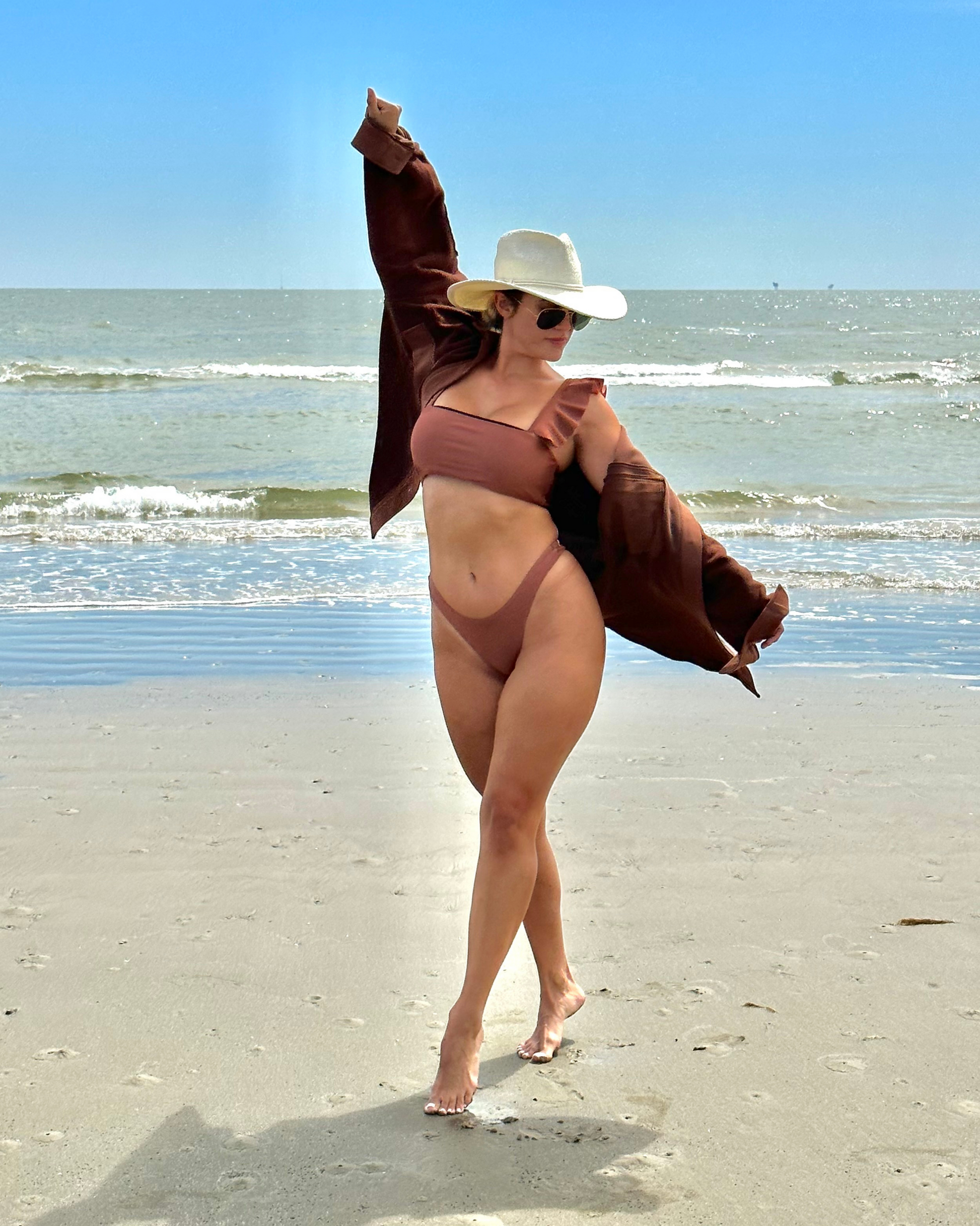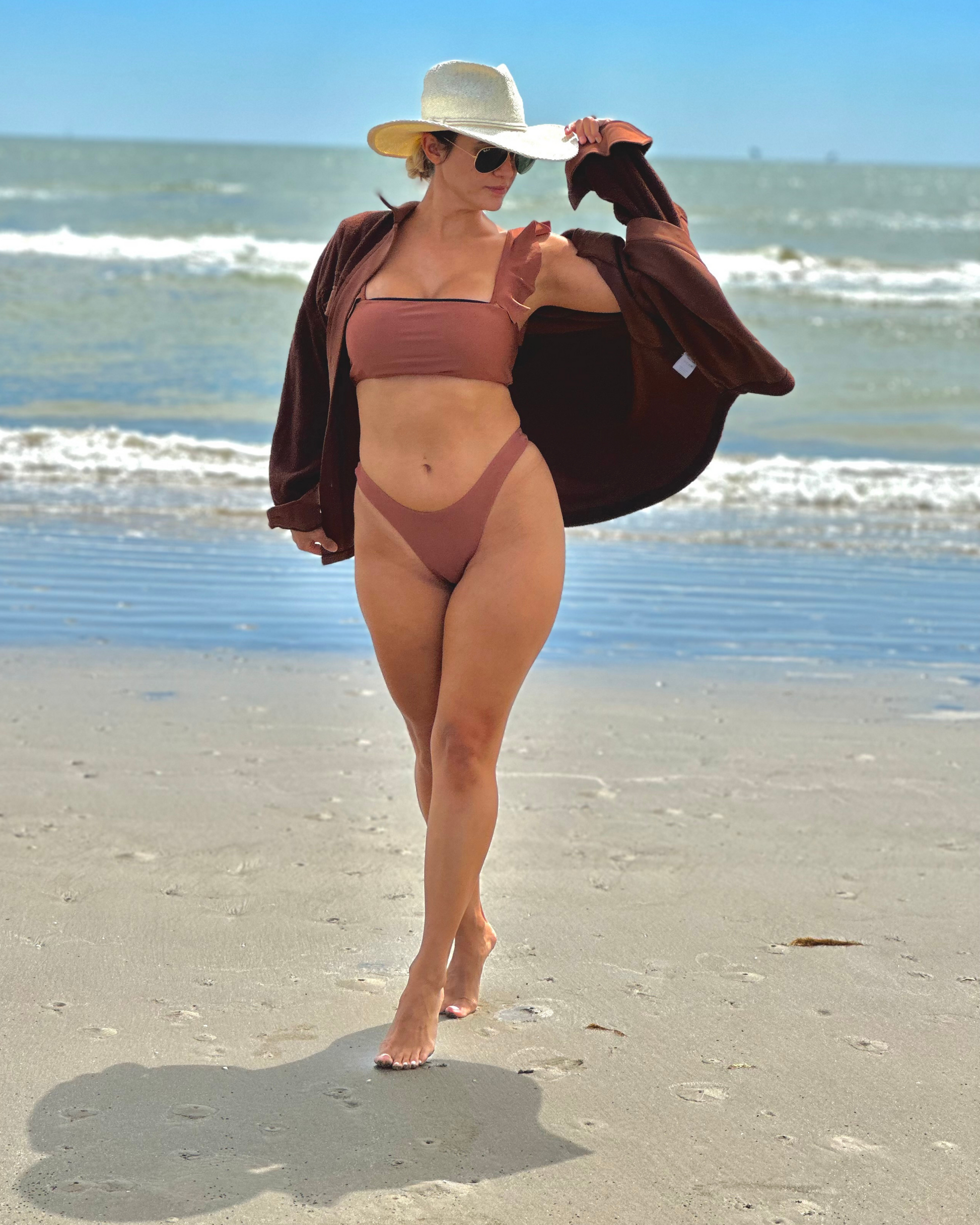 Terra top is a double-lined bandeau with charming straps that can be worn on or off the shoulders. This top has a slight shimmer perfect for glamorous days and nights.